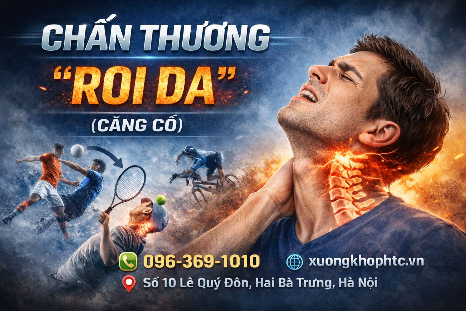 Chấn thương “roi da” (whiplash) xảy ra khi có sự gập và/hoặc duỗi đột ngột của cổ, thường gặp khi vận động viên bị va chạm từ phía sau trong các môn thể thao đối kháng, khiến đầu bị hất mạnh ra trước rồi ra sau. Các mô mềm của cổ bao gồm đĩa đệm cột sống, dây chằng, cơ cổ và rễ thần kinh cổ có thể bị tổn thương, gây ra đau cổ, cứng cổ và giảm khả năng vận động.