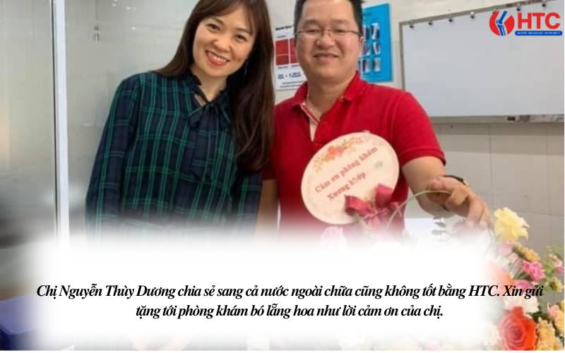 Chị Dương đã bị các cơn đau xương khớp hành hạ nhiều năm. Chị cũng đã sang nhiều nước có nền y học hiện đại nhưng vẫn chưa điều trị triệt để tình trạng của mình. Chị đã tìm đến phòng khám qua người Dì của mình giới thiệu. Hiện tại sau thời gian điều trị sức khỏe chị đã cải thiện rất nhiều. Giỏ hoa tươi tặng bác sĩ chính là lời cảm ơn của chị đến đội ngũ y bác sĩ phòng khám Xương khớp. Phòng khám chúc chị luôn khỏe mạnh, hạnh phúc và thành công trong mọi lĩnh vực. Trân trọng!