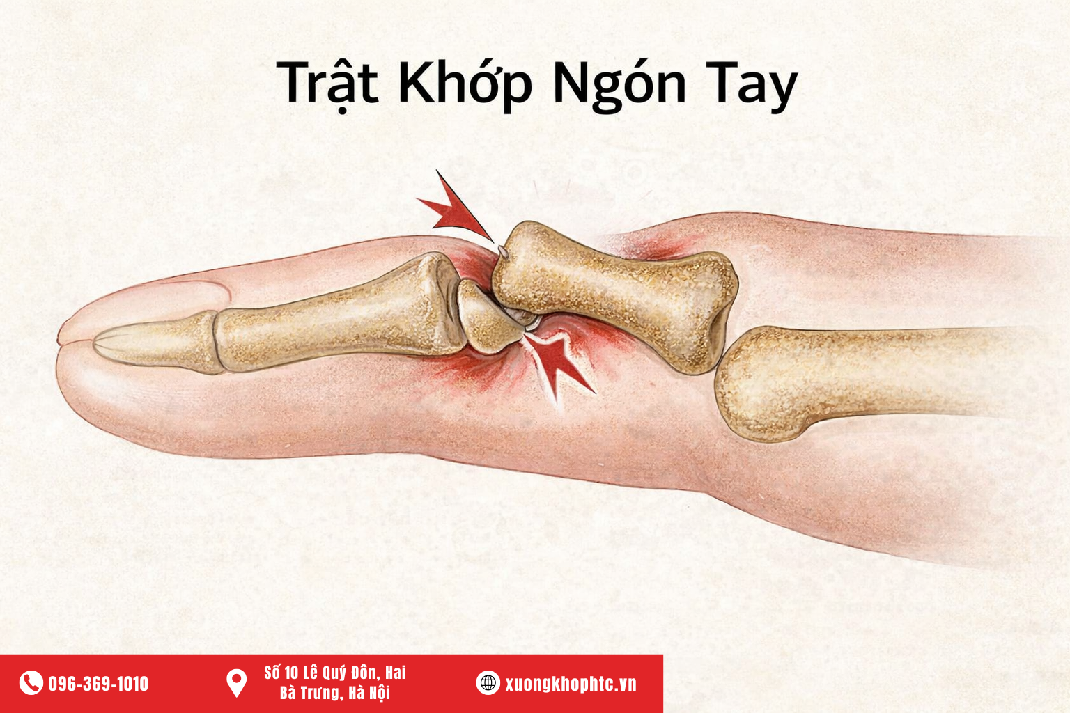 • Biến dạng khớp, mất chức năng và viêm khớp sớm có thể xảy ra nếu trật khớp ngón tay không được điều trị.